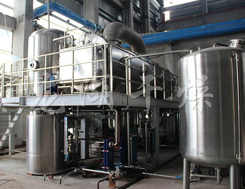 單效或多效降膜蒸發器,適用于牛奶、葡萄糖、淀粉、木糖、制藥、化工、生物工程、環保工程、廢液回收等行業進行低溫連續式蒸發濃縮,具有傳熱效率高,物料受熱時間短等主要特點,所以特別適用于熱敏性、粘滯性、發泡性等物料。